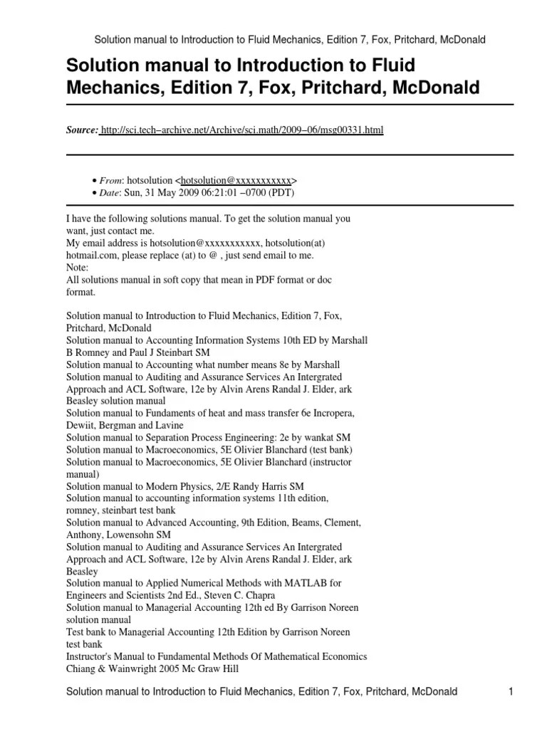 Solutions manual fluid mechanics 5th edition by frank m white how to download any book and its solution manual free from internet in pdf. Read the latest magazines about solution manual fundamentals of fluid mechanics 6th edition by munson and discover magazines on yumpu.com. Views 9,896 downloads 6,757 file size . Fluid mechanics is an essential subject in the study of the behaviour of . Buy fundamentals of fluid mechanics, student solutions manual on amazon.com ✓ free shipping on qualified orders. Instructor solutions manual for fluid mechanics, si edition. Solutions manual fluid mechanics for engineers david a. How is chegg study better than a printed fluid mechanics 7th edition student solution manual from the bookstore? Chin may 6, 2016 chapter 1 properties of fluids 1.1.